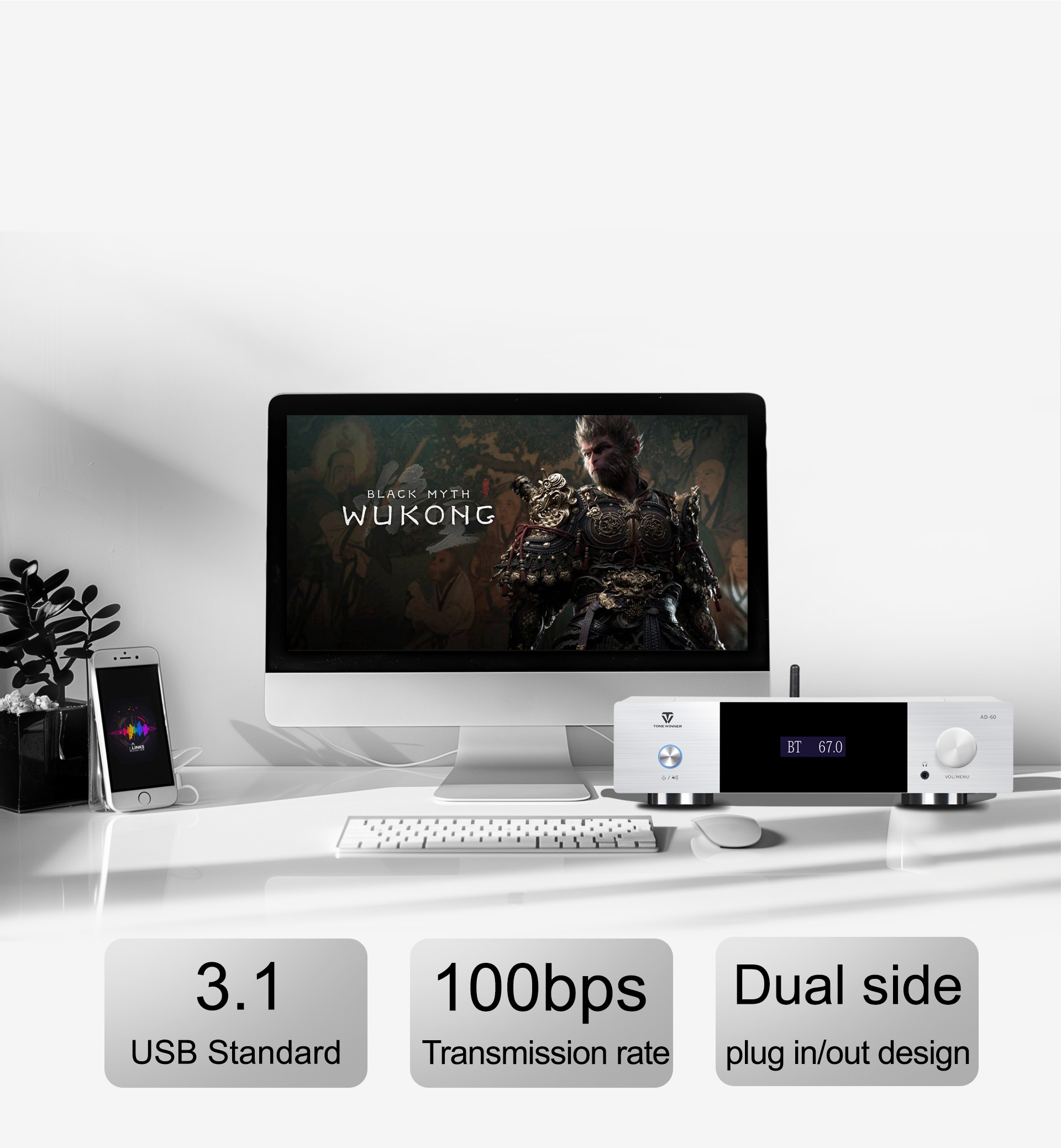 La transmisión eficiente tipo C reduce la interferencia de la señal, mejorando enormemente el rendimiento del audio de la computadora.