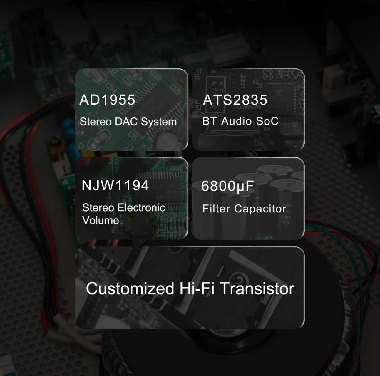 Transformador de alta calidad de 100W para aportar potencia al amplificador.
