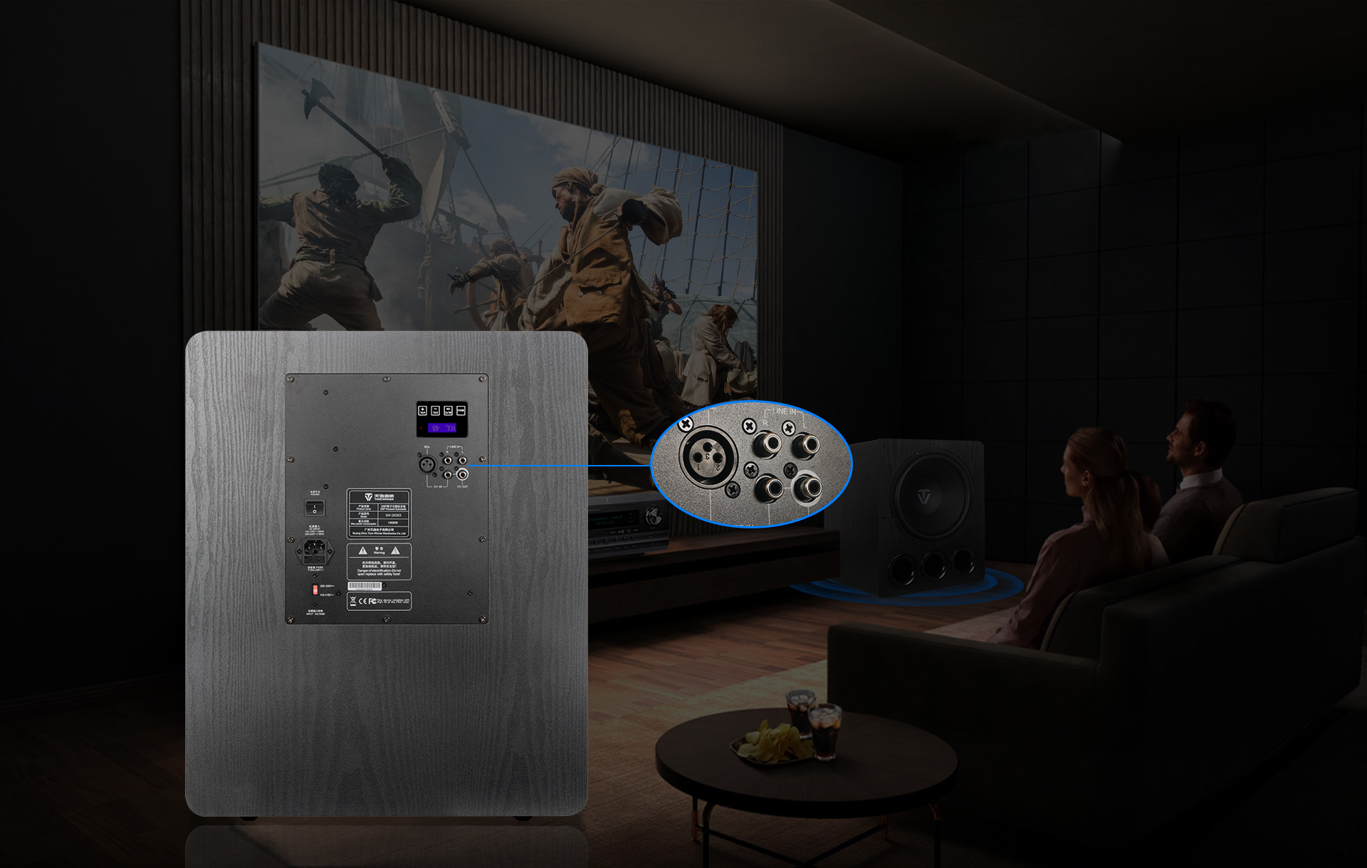 Ofrece conectores de entrada balanceados y no balanceados y un conector de salida de subwoofer para satisfacer diferentes posibilidades.