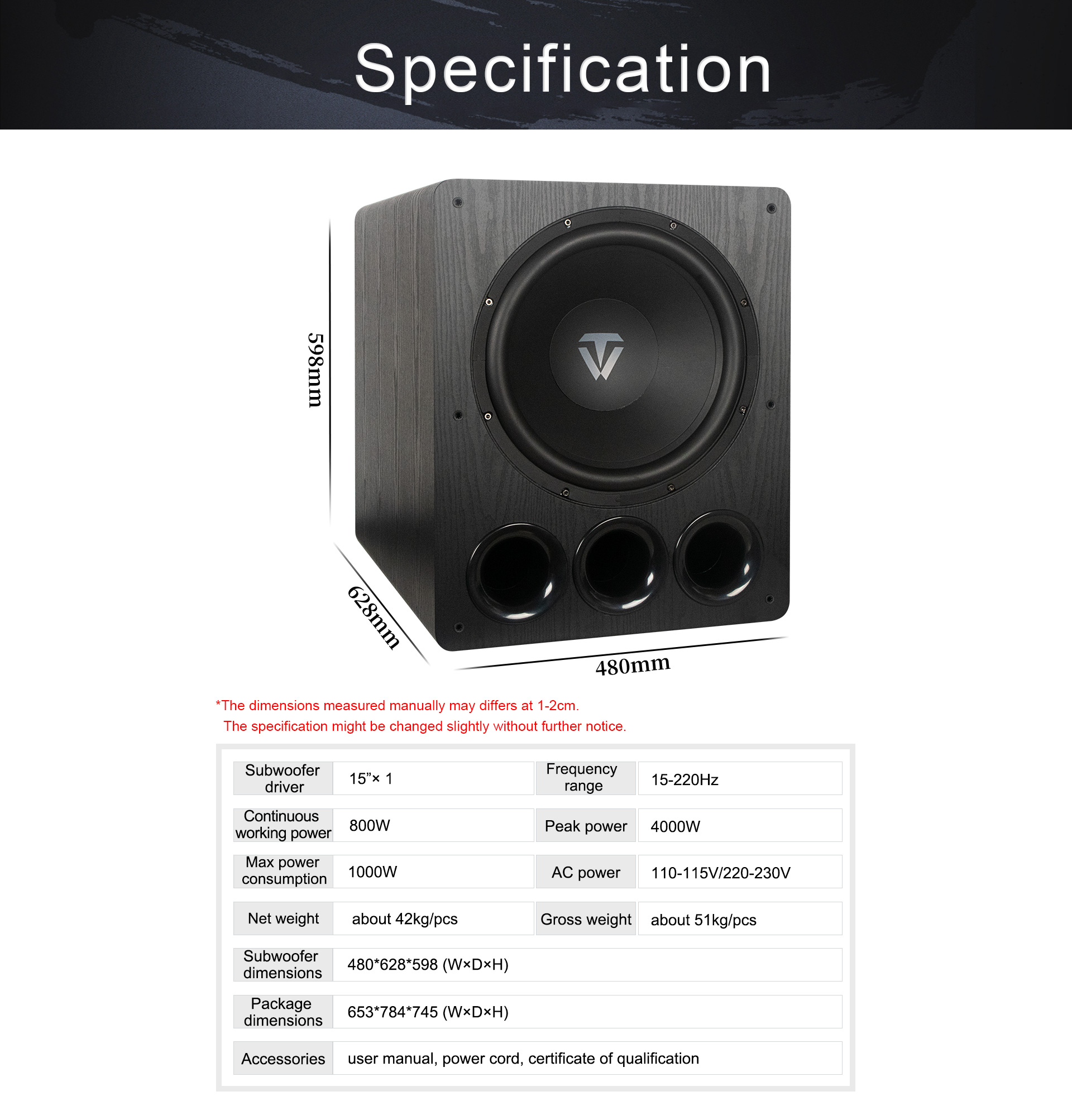 El gabinete de MDF es resistente para brindar un rendimiento de graves de alta potencia y es adecuado para la mayoría de los diseños de habitaciones.